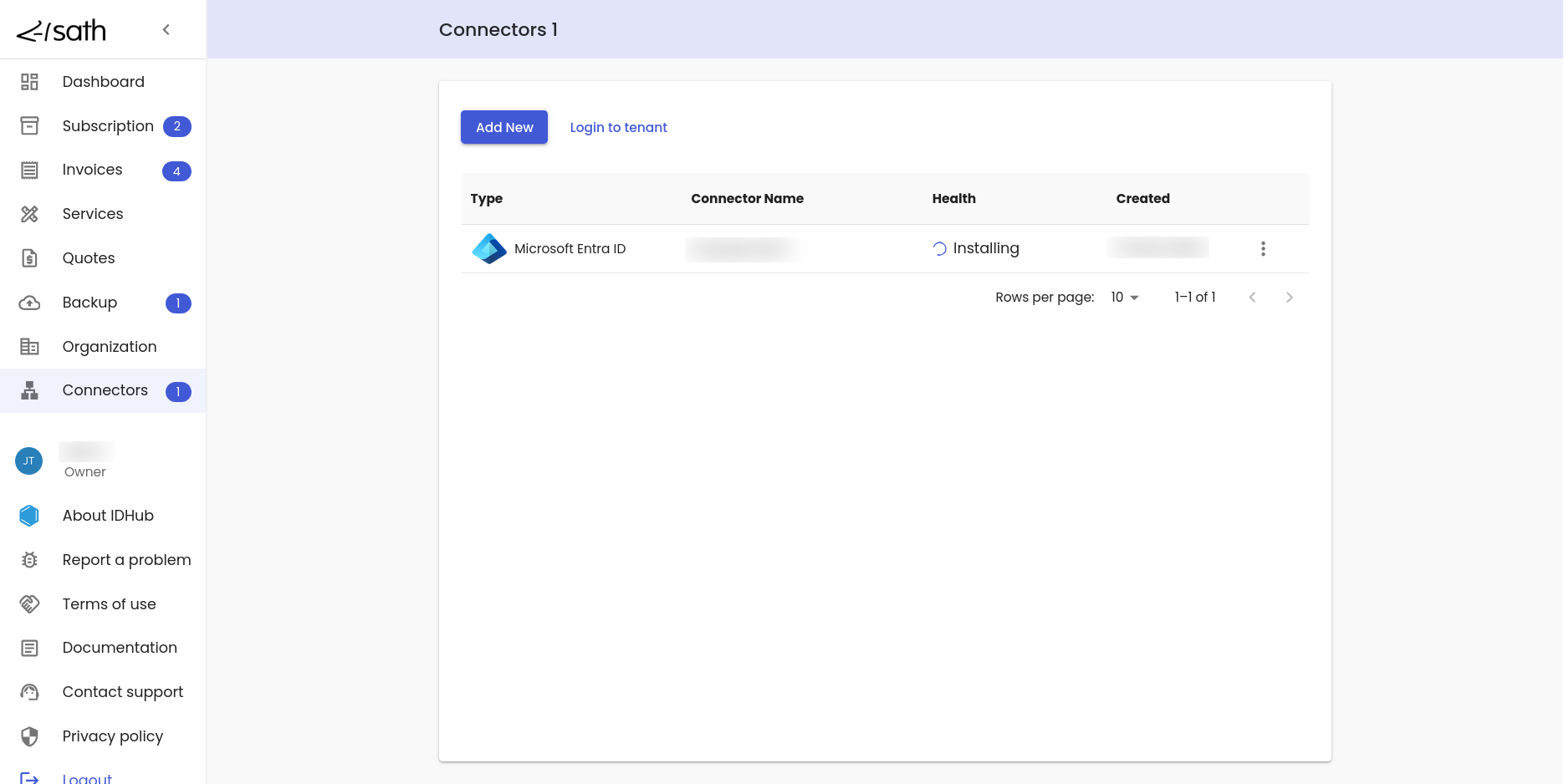 IDHub would start the installation of the connector. The health status would be installing as is shown in the screenshot below: