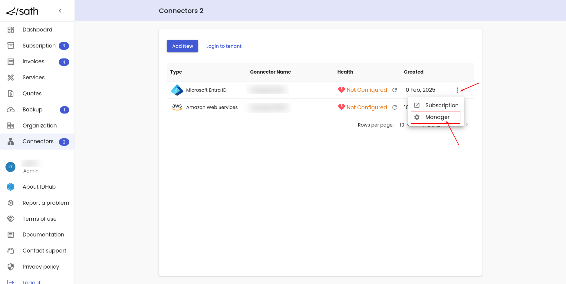 • You will be taken to the IDHub Connector manager page