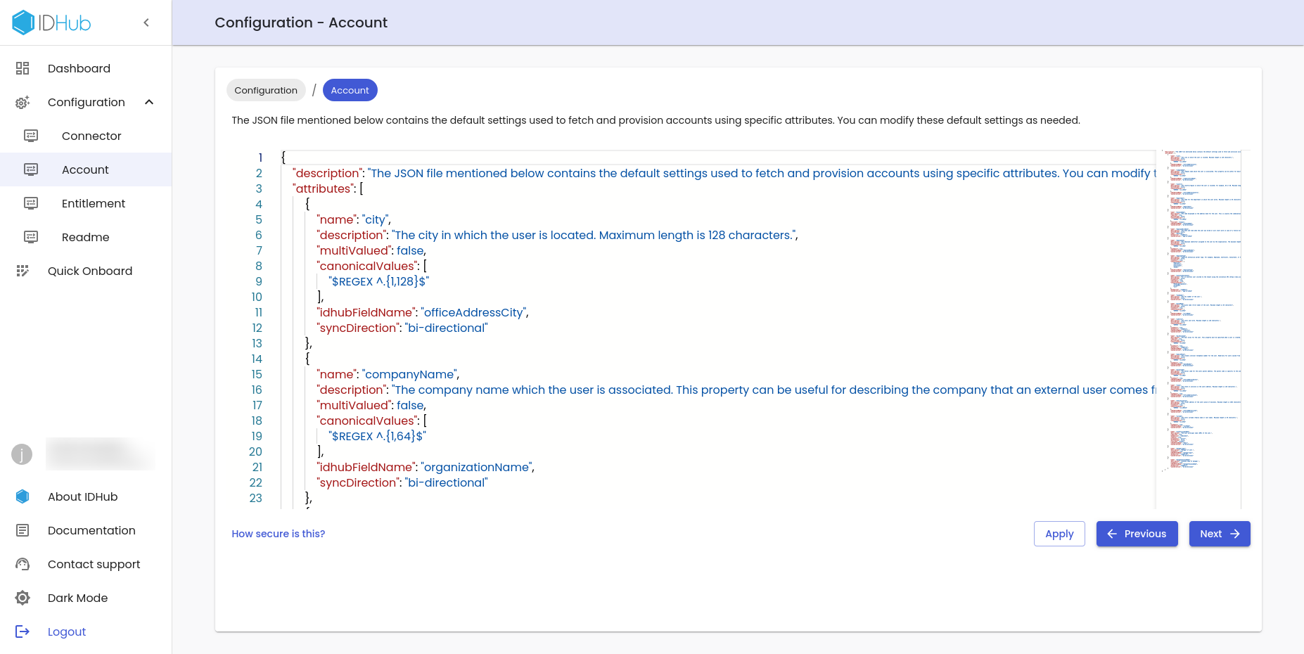 This page contains the default configuration used to fetch and provision accounts using specific attributes. You can modify these default settings as needed.