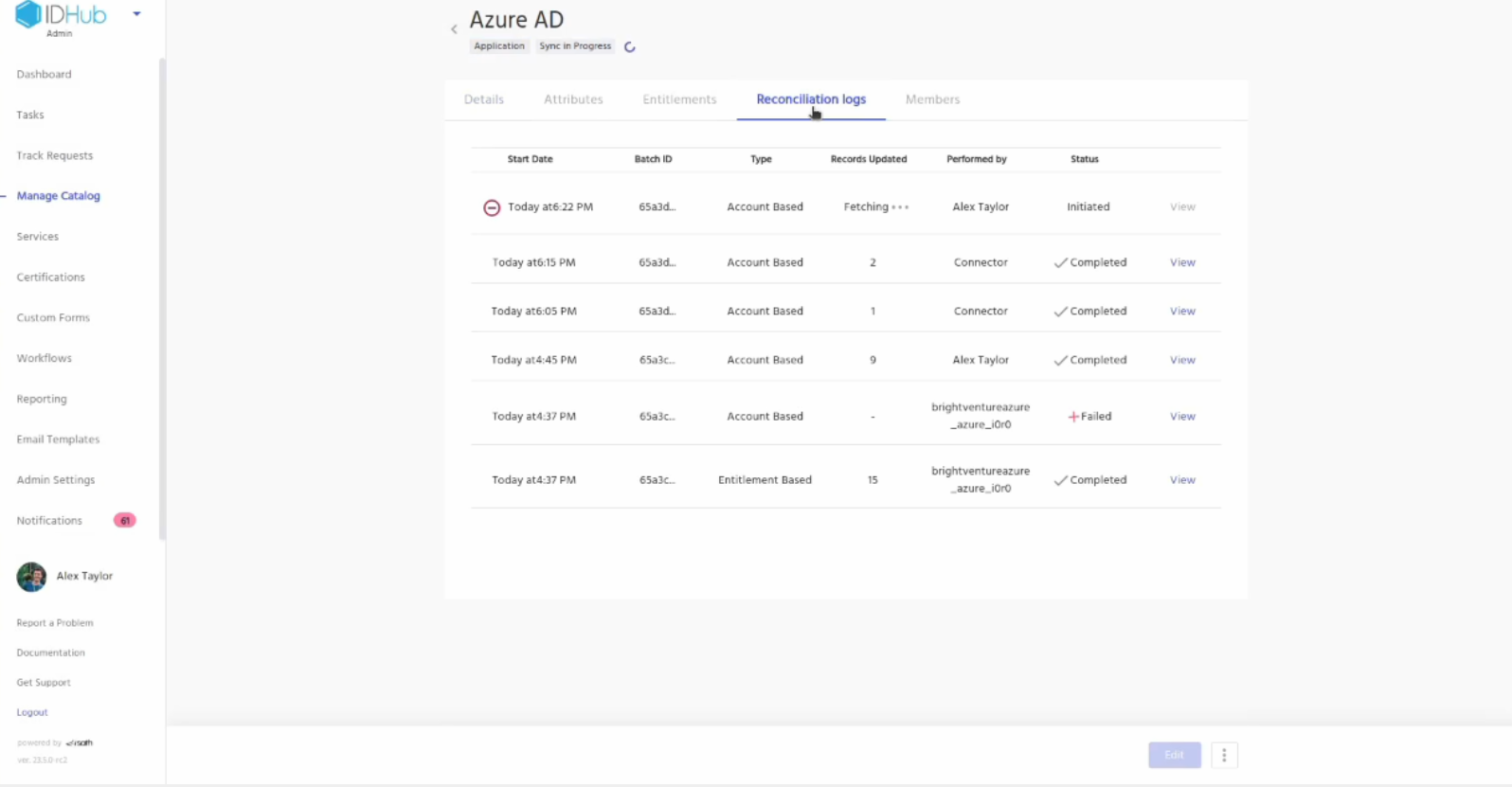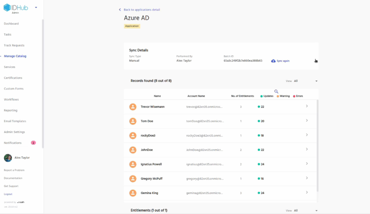 Click on the view link in one of the logs. You will be redirected to the details of the log where you can see the users or entitlements that have been synced.