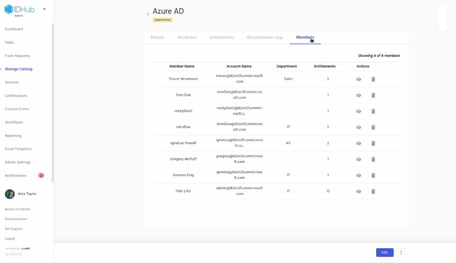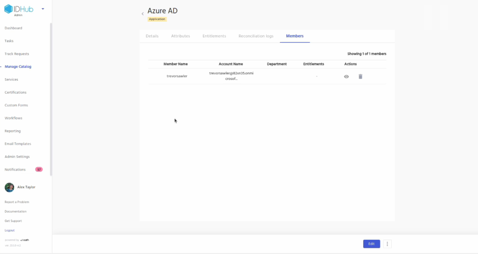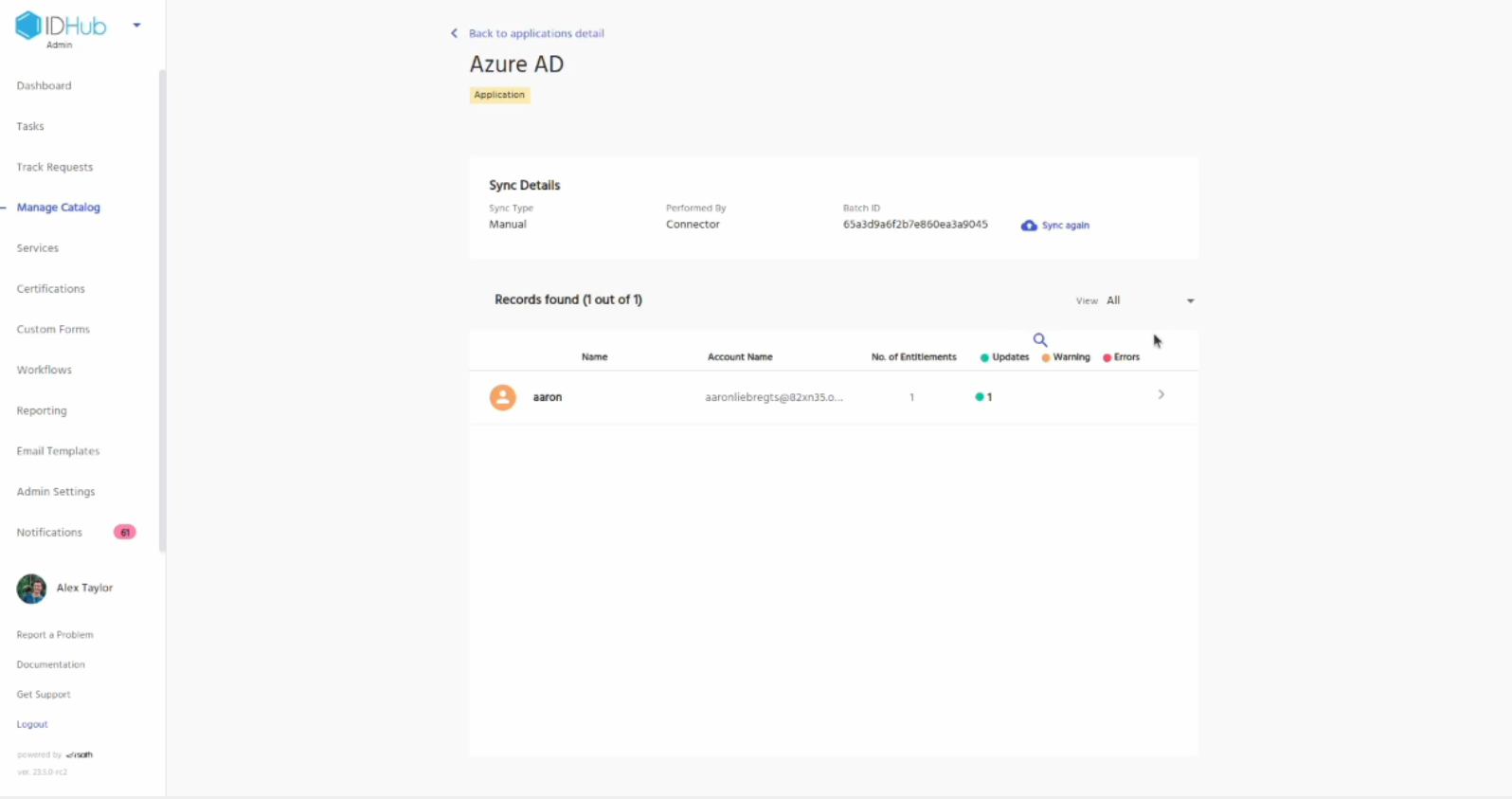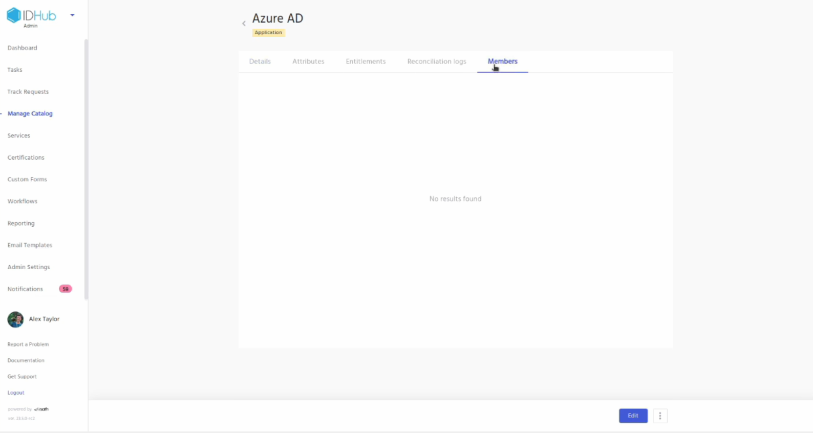 Now, log into your IDHub tenant and then click on the Manage catalog. You will see the Entra ID application. Click on it. You can see the details of the application