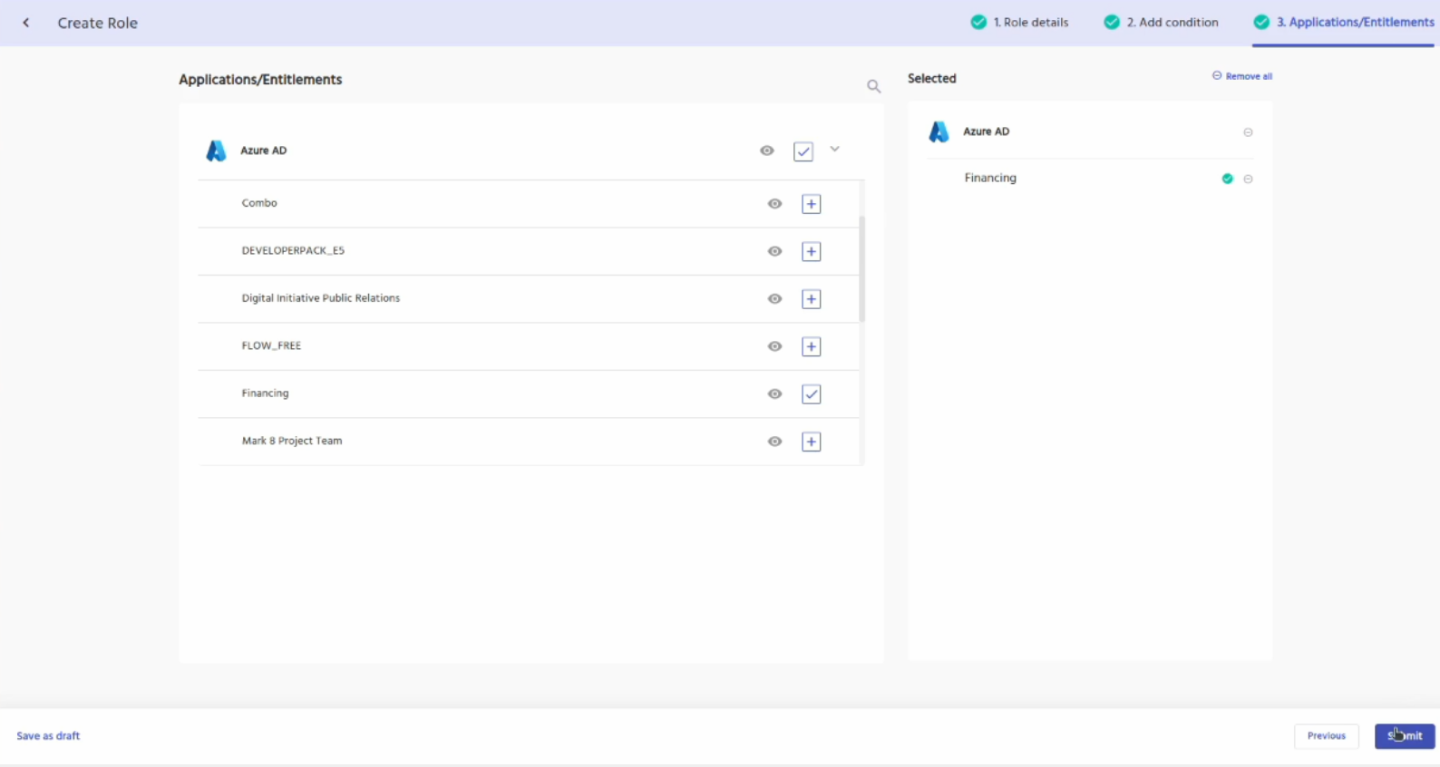 Click on the Entitlements tab and it will show you the different Entra ID groups as entitlements.