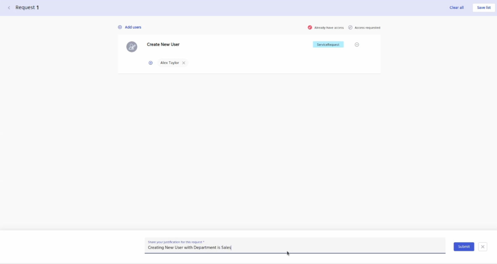 Enter a justification for the request and then click on the submit button.