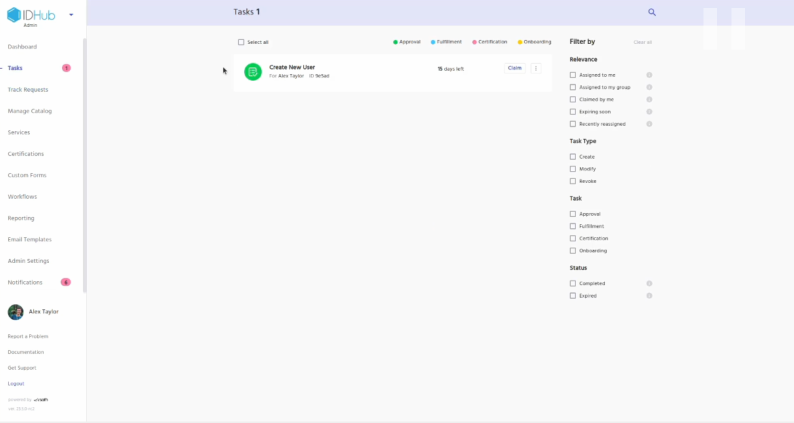 Now, Goto tasks and then claim and approve the request.