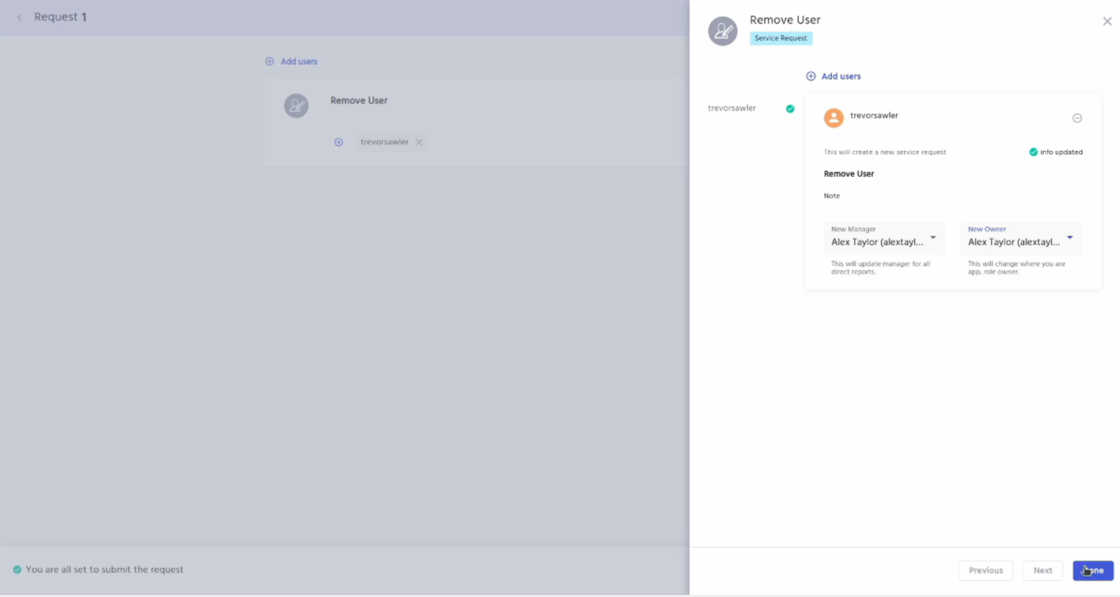 Enter the new manager and the owner and click on the done button.