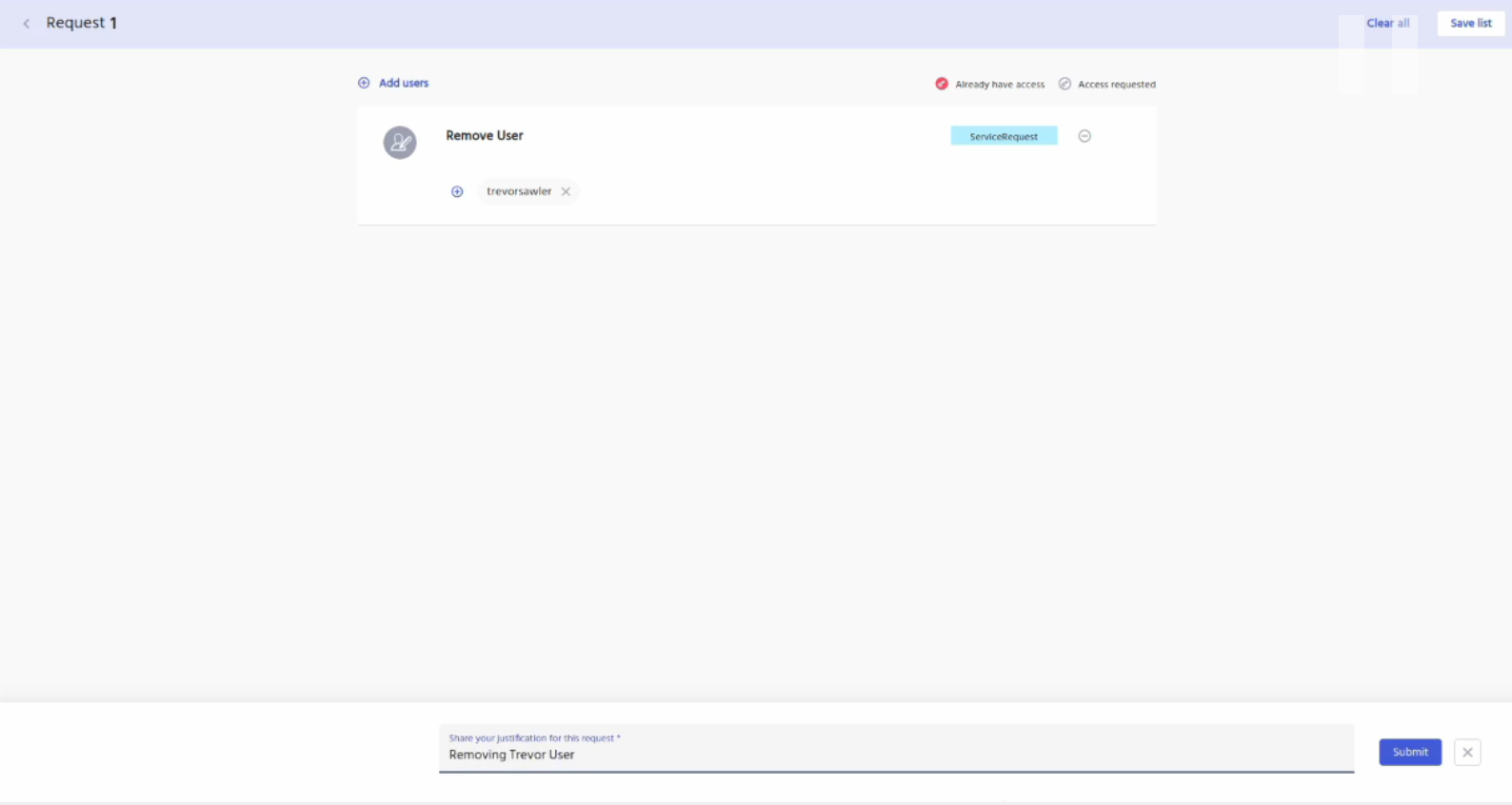Enter your justification for the request and then click on the submit button.