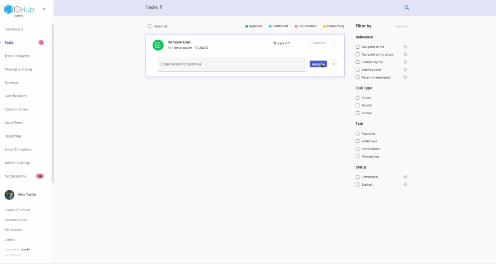 Goto tasks, claim and approve the request.
