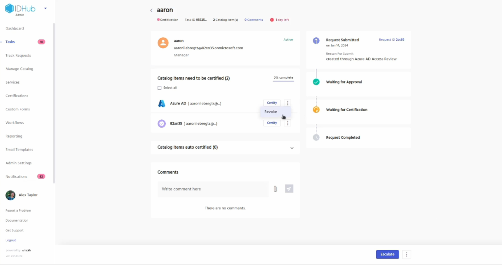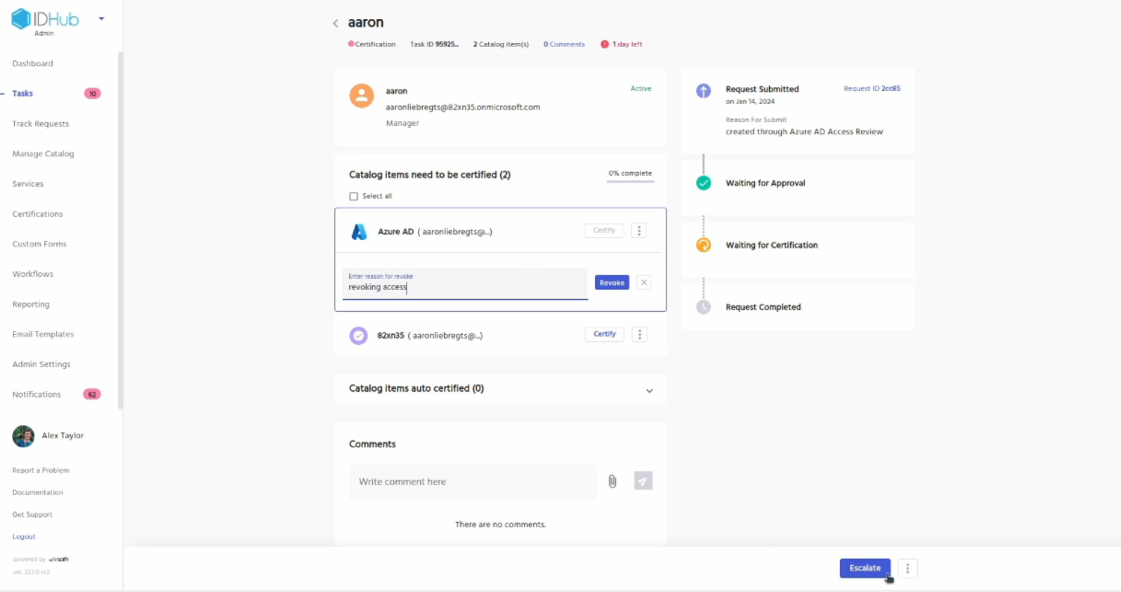 • This will create a certificate definition for you in your IDHub tenant. This you can later modify for performing access reviews on your Entra ID accounts.