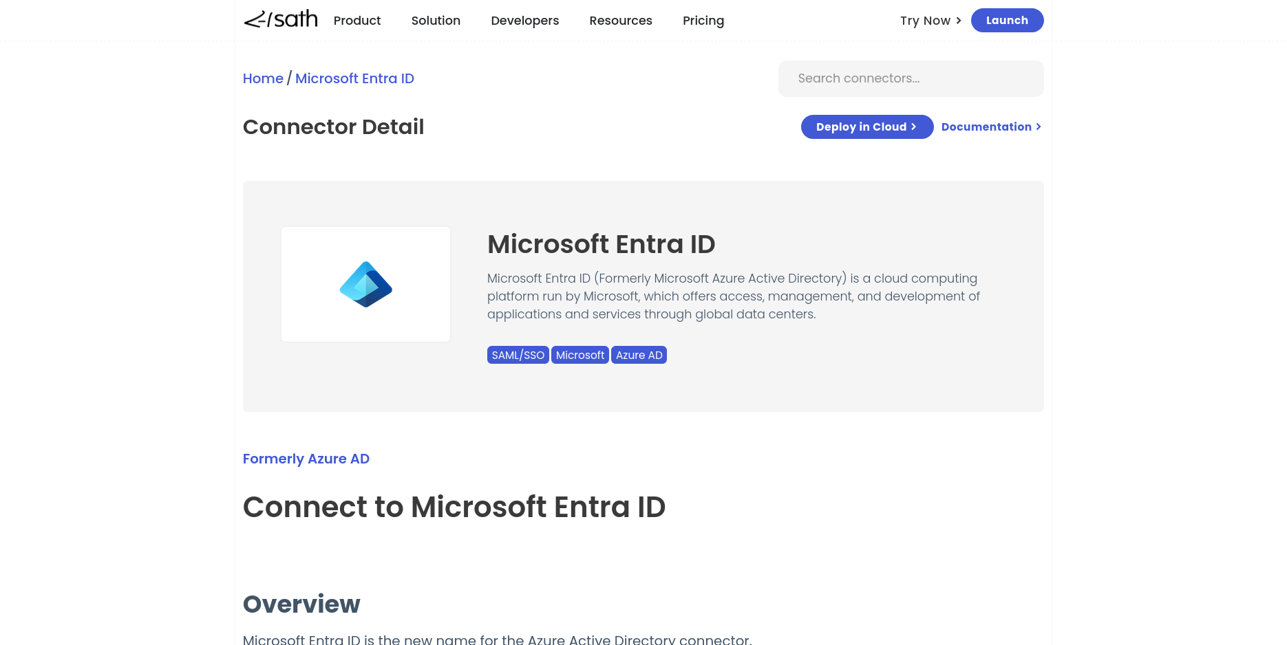 • Go to sath website and at the top navigation menu go to Product --> Identity Connectors --> Entra ID.