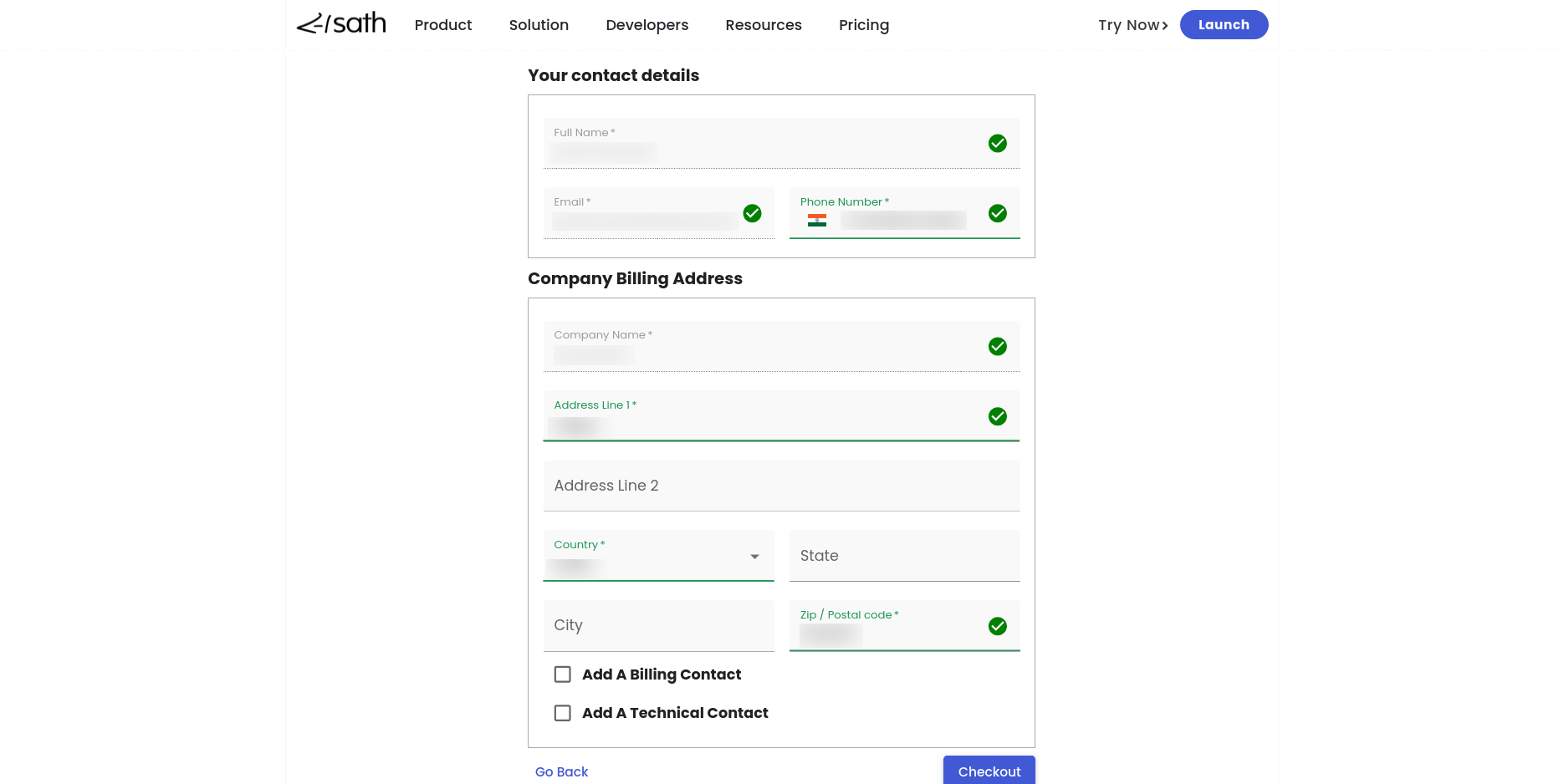 • Enter contact details and other information in the checkout page and click on the button Checkout to complete the purchase.