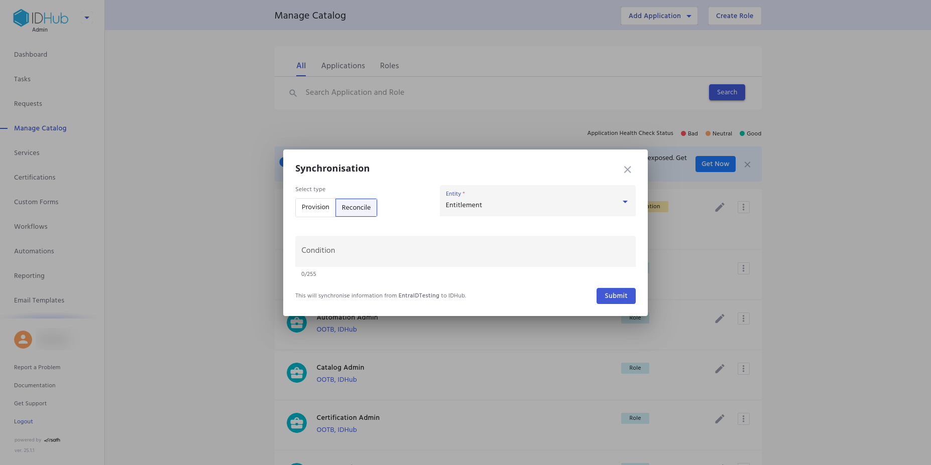 - This means that upon reconciliation of the application, the non-existent accounts and entitlements of target system would be immediately revoked/removed from IDHub. In other words, stale data (non-existent) accounts / entitlements in the target system would be removed instantly when you execute the reconciliation of the application in IDHub.