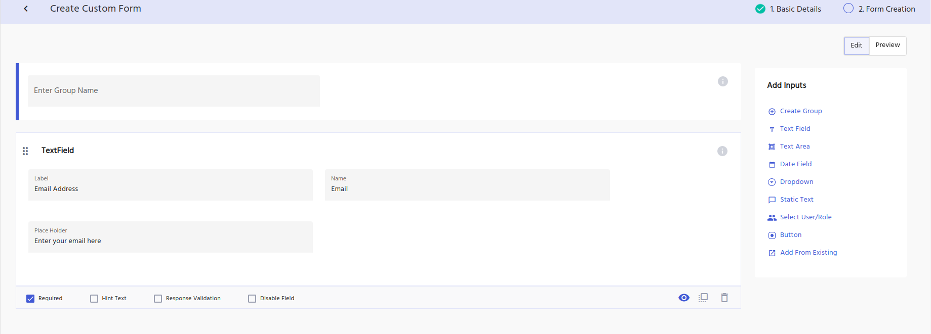 - After entering all the required fields, you can also preview the form, by clicking on the