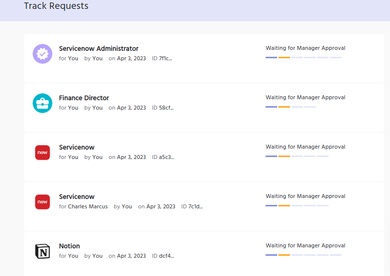 If you are an admin user, you can also go to IDHub admin app and click on Track Requests to view and track your requests.