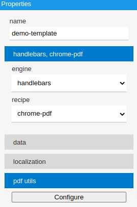 If the recipe is chrome-pdf, then you can click on the property pdf-util as is shown below: